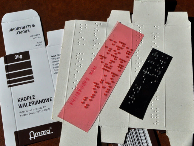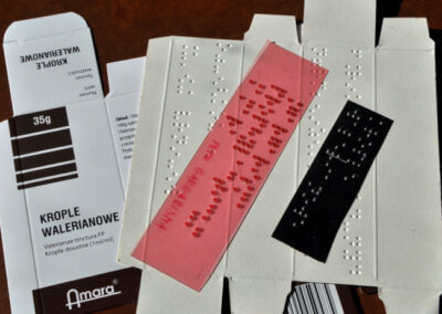 Wykonujemy również pudełka na lekarstwa z czcionką Braille’a.